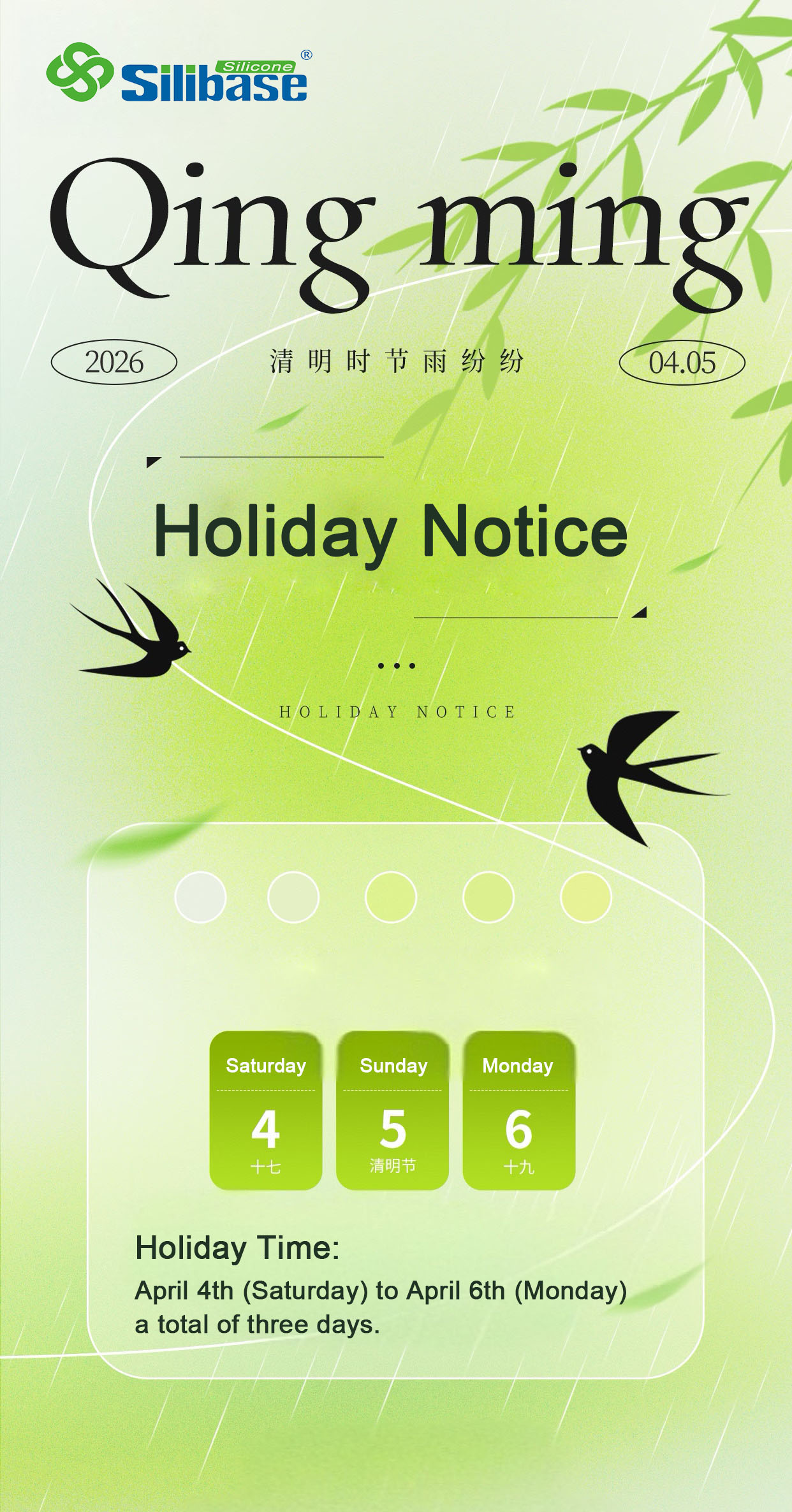 We appreciate your understanding and support. Wishing you and your family a peaceful and pleasant Qingming Festival.